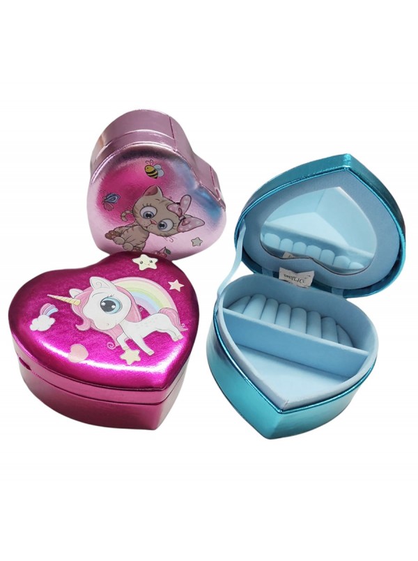 Porta Gioie per bambina a forma di cuore con specchio, Unicorno Koala Gattino