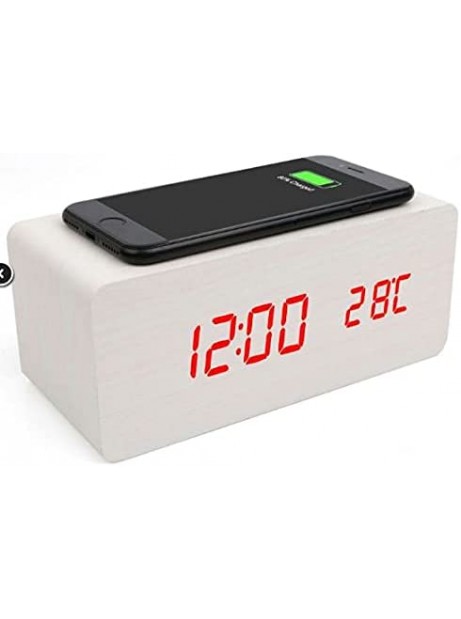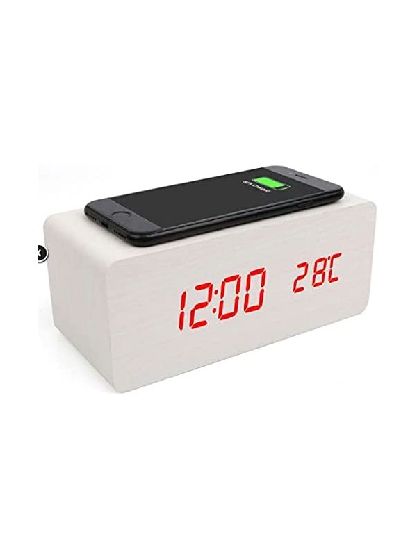 Sveglia in Legno Funzione Ricarica Wireless Bianco Controllo vocale temperatura