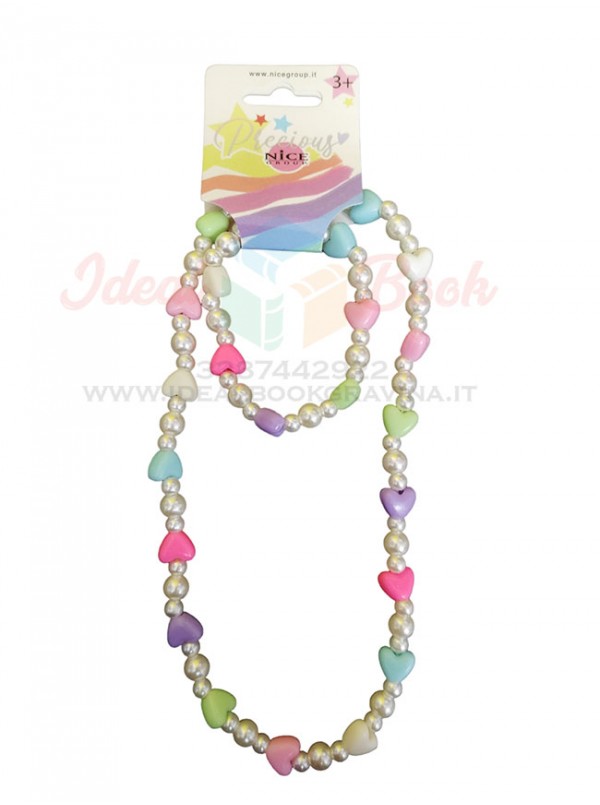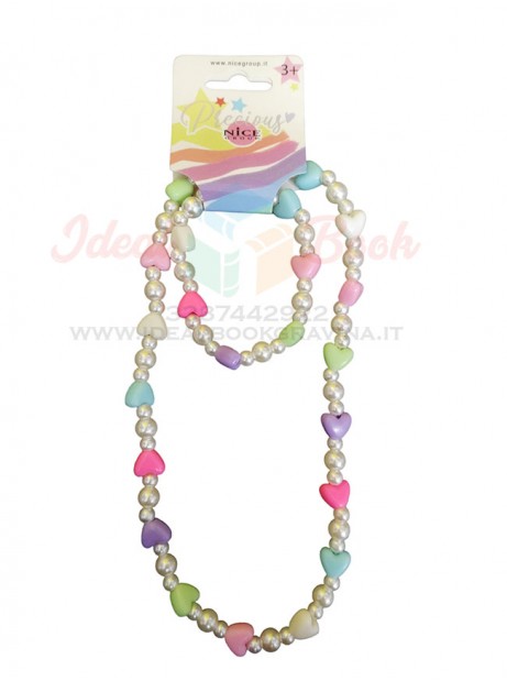 Bracciale e collana per bambina con perle bianche e Cuoricini colorati Nice