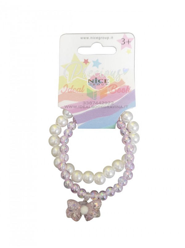 Coppia Bracciali per bambina perle bianche e rosa con fiocco