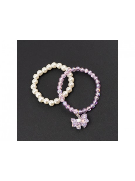 Set da 2 bracciali Bracciali per bambina perle bianche e rosa con fiocco
