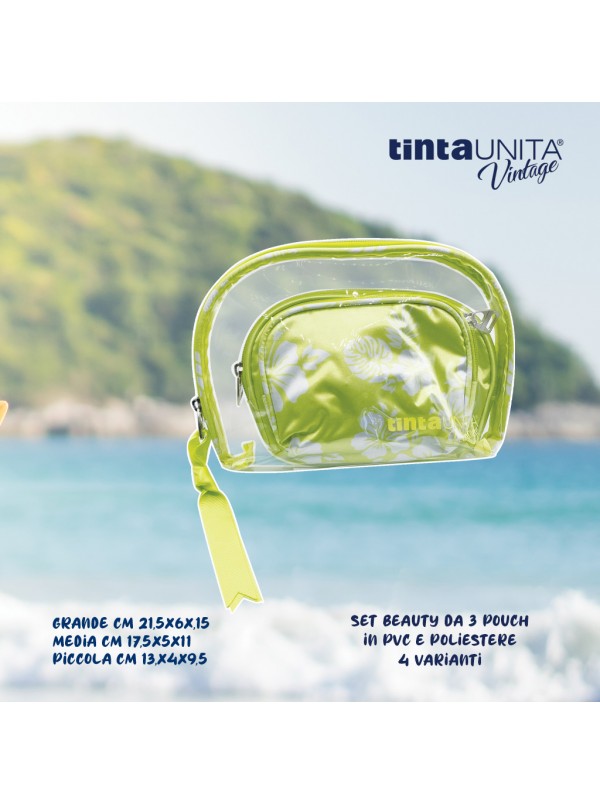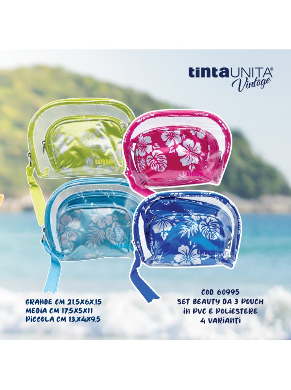 Set di 3 pouch in pvc e poliestere con laccetto - Beauty TintaUnita Vintage 2024