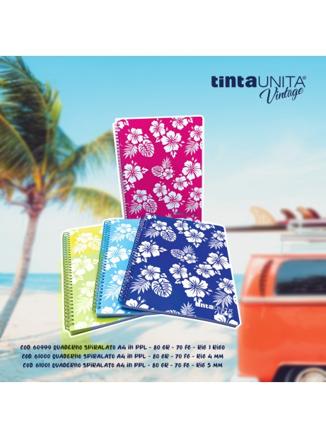 Quaderno con spirale metallica, formato A4 con 70fogli da 80 grammi a righi 1R - rigo scuola media e superiori By TintaUnita Vintage 2024