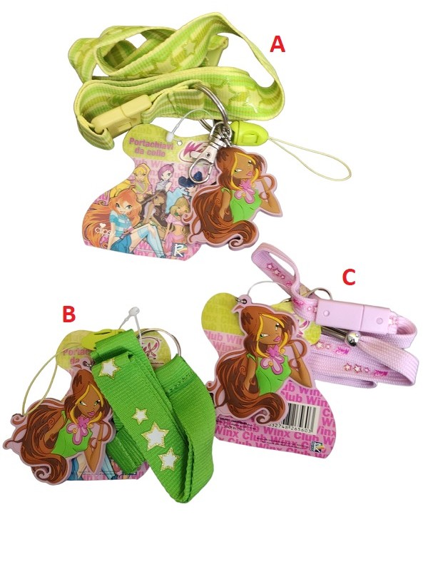 Portachiavi da collo Winx Club in tessuto con personaggio e moschettone, clip