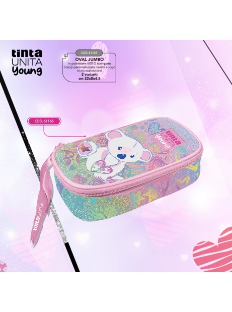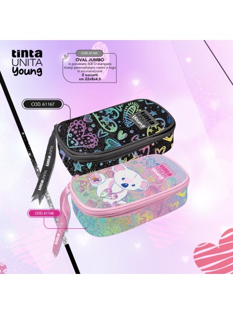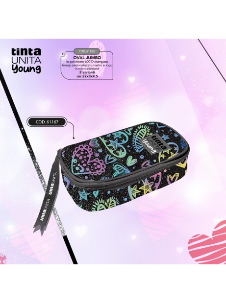 Astuccio Oval Maxi TintaUnita Young Jumbo Borsellino per Cancelleria nero o rosa