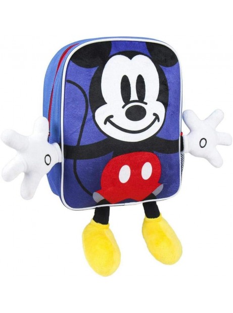 Zaino zainetto asilo Mickey Mouse con mani 3d + Tasca Laterale in Rete Elastica