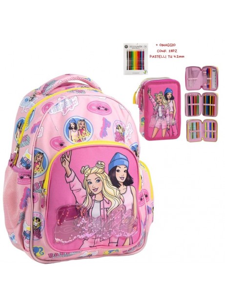 Kit Zaino scuola elementare + astuccio triplo completo Barbie