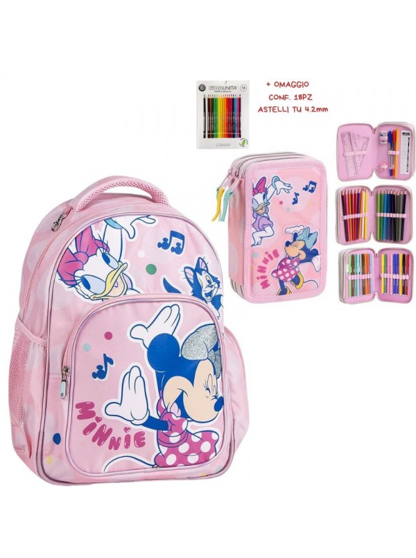 Kit Zaino scuola elementare + astuccio triplo completo Disney Minnie