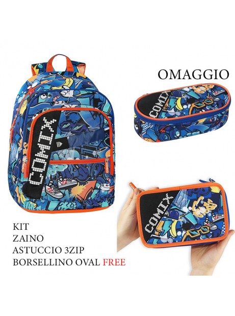 Kit scuola Zaino Comix Ultra Bright + astuccio 3zp + borsellino oval in omaggio