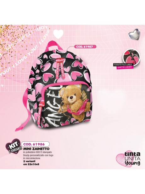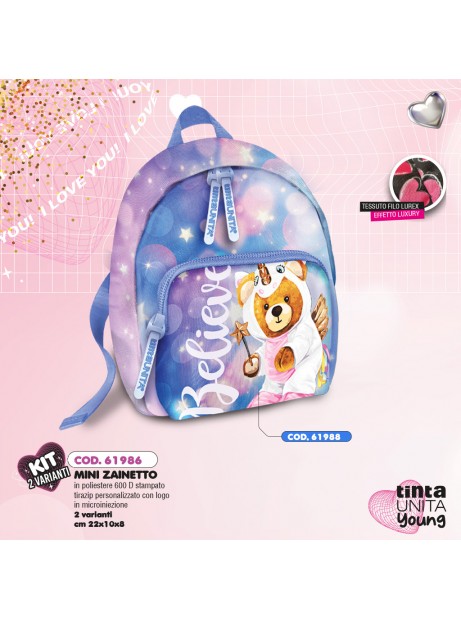 Linea 2021 Tinta Unita Glamour disponibile in 2 colorazioni: Nero con cuoricini rossi e rosa, azzurro e rosa entrambi con orsacchiotto e unicorno