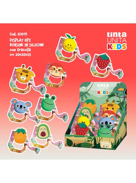 Mini Borsetta con tracolla TintaUnita Kids in silicone forma di animali e frutta