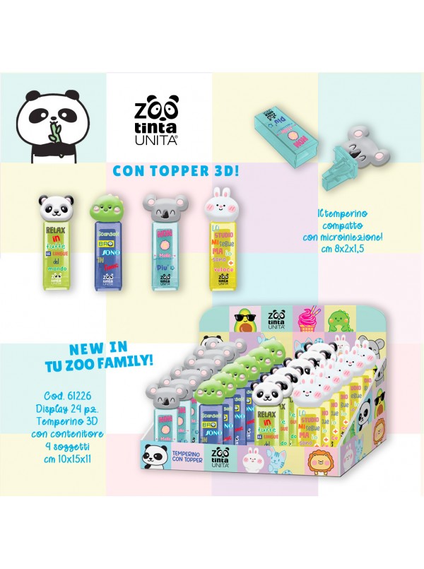 Mini Temperino ad 1 foro TintaUnita Zoo con Topper Animali in 3D