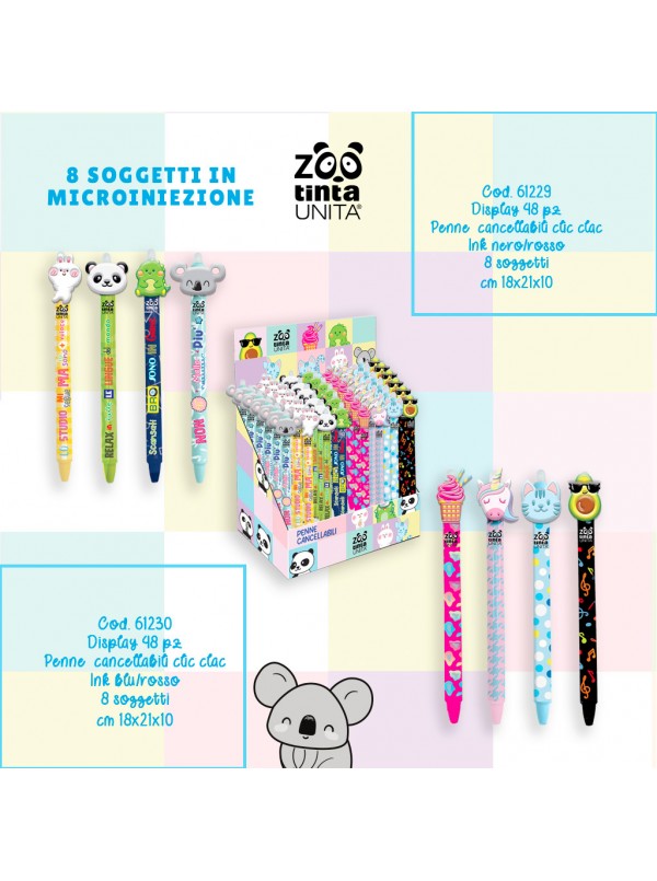 Penna a scatto cancellina, con topper Tinta Unita Zoo 2024 - fantasie assortite(1 PEZZO) koala, unicorno, muffin, avocado