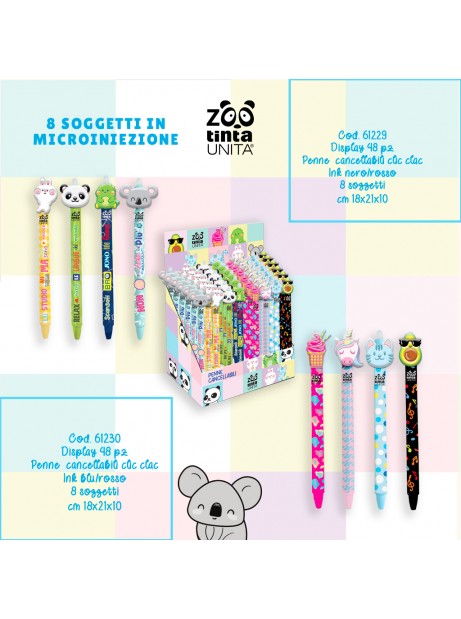 Penna a scatto cancellabile topper Tinta Unita Zoo - fantasie assortite(1 PEZZO)