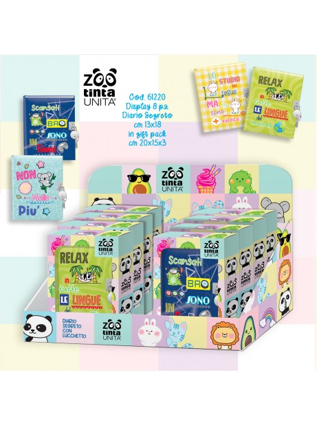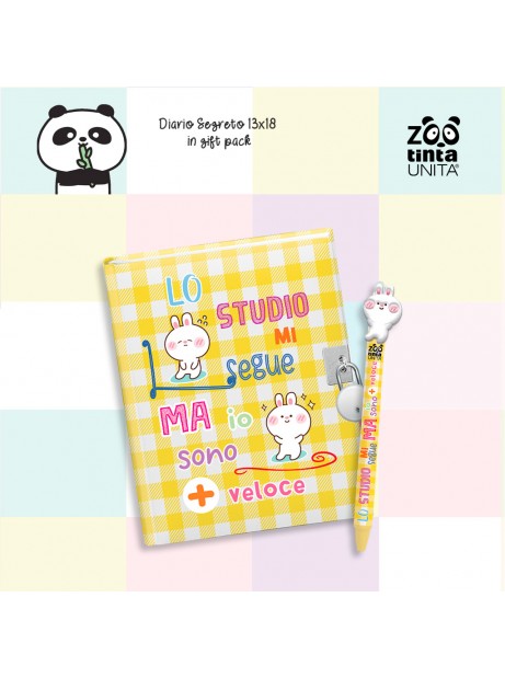 Diario segreto Tinta Unita Zoo con lucchetto e penna cancellabile