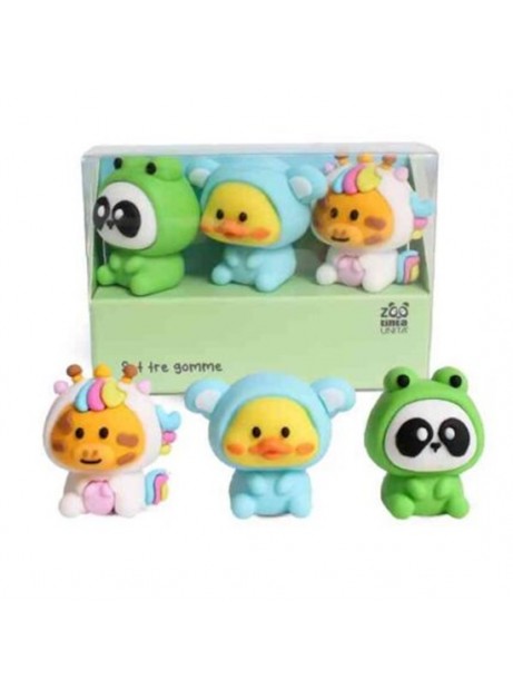 Gomme da collezione Tinta Unita Zoo – Set con 3 gomme
