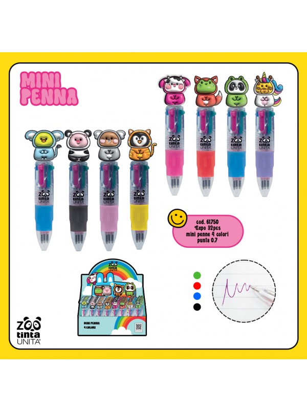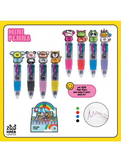 Mini Penna con 4 colori e animaletto 3D TintaUnita Zoo Happy