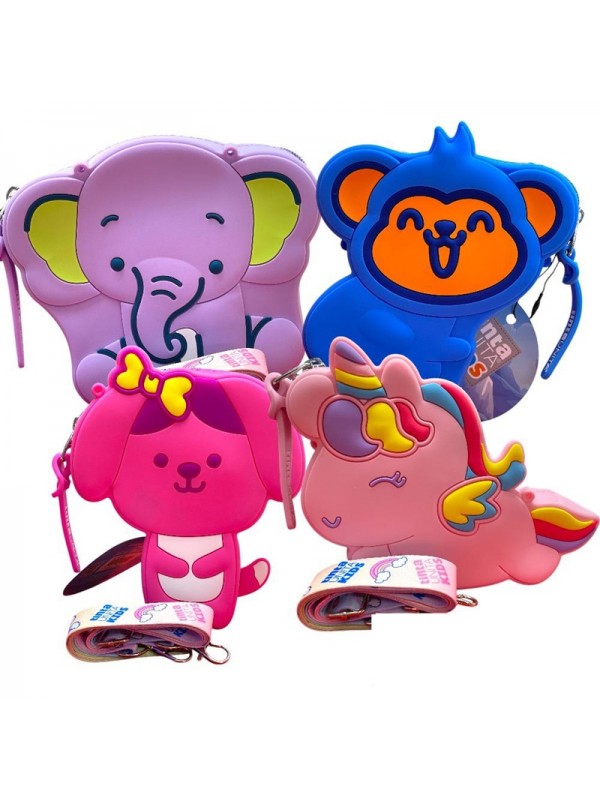 Mini Borsetta in silicone a forma di animali TintaUnita Zoo con tracolla