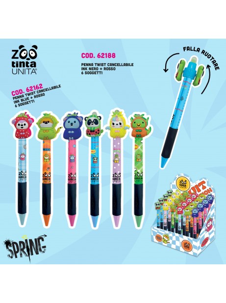 Penna Cancellabile Twist TintaUnita Zoo - pupazzetti gireveli - 1pz - ink nero
