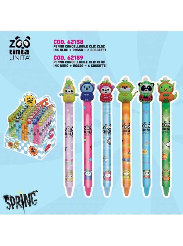 Penna a scatto cancellabile topper Tinta Unita Zoo - fantasie assortite(1 PEZZO)