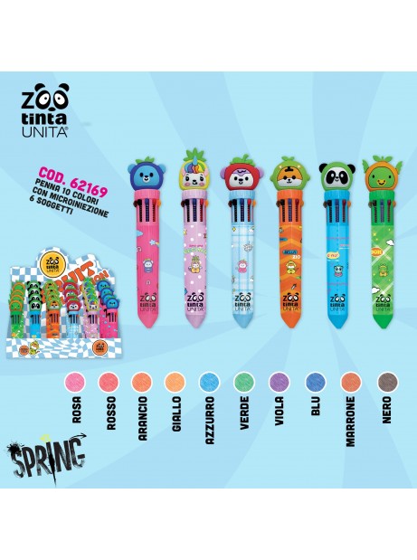 Penna con 10 colori e animaletto 3D TintaUnita Zoo