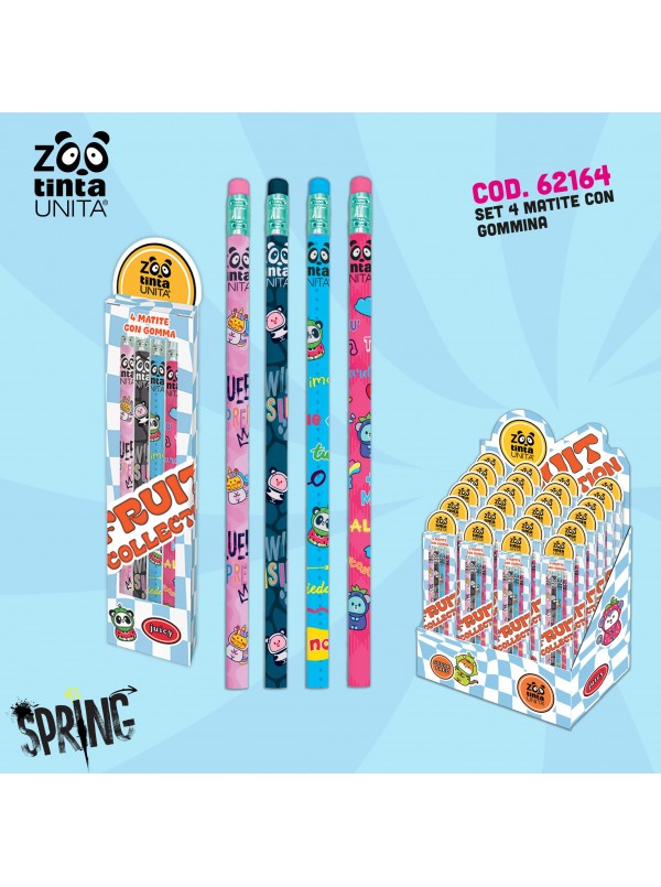 Set 4 matite con gomma TintaUnita Zoo Friut collection