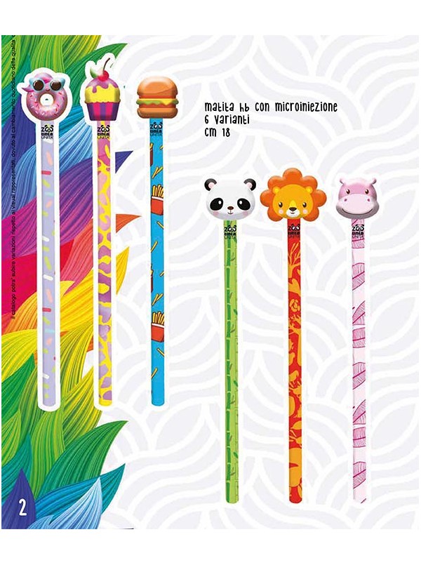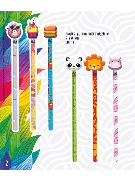 Matite con topper (ippopotamo, ciambella, muffin, leone, panda , hamburger)
