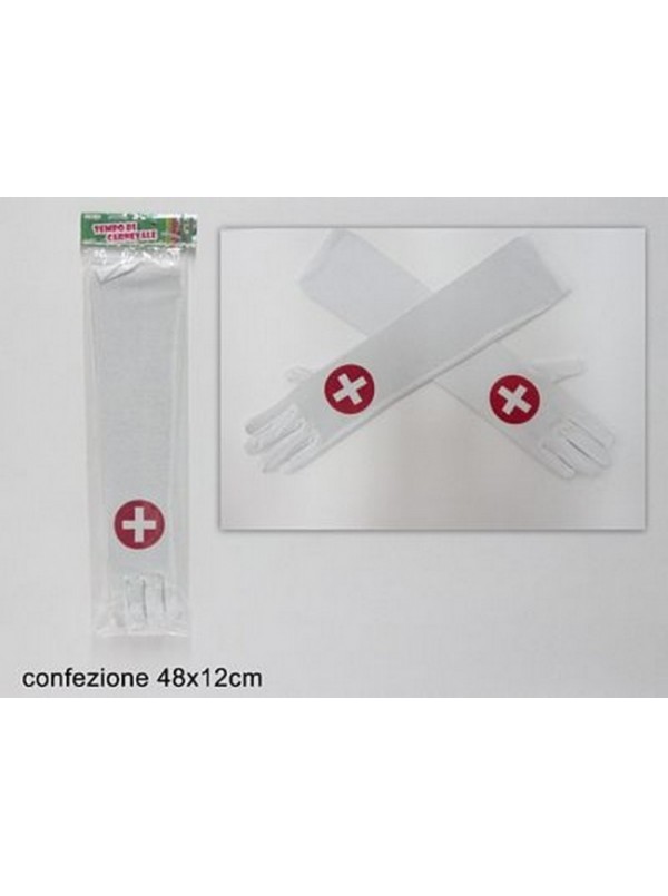 Guanti Infermiera Bianchi lunghi con croce - 100% Poly
