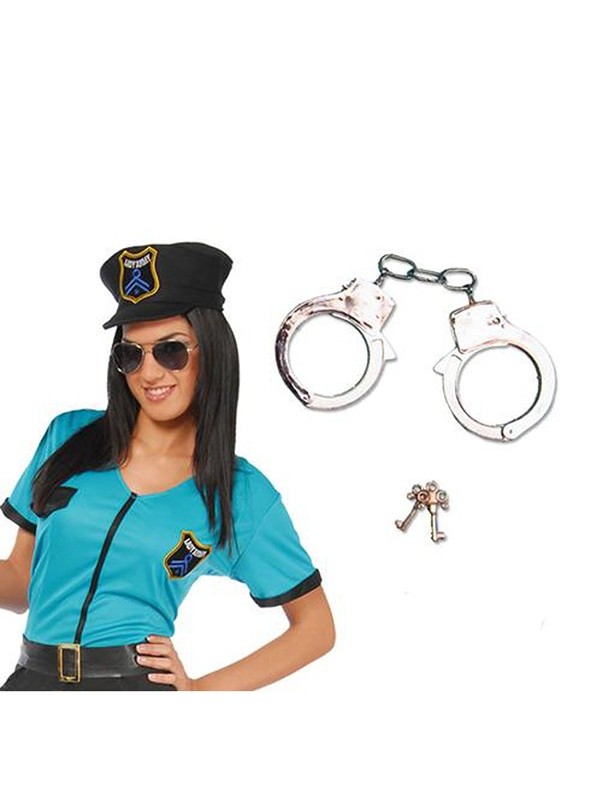 Manette in Metallo con chiave scherzo costume poliziotto carnevale