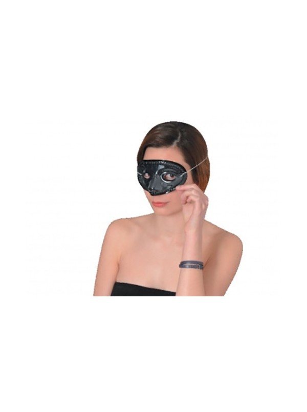Maschera Nera Lucida Occhi e Naso Decorata Accessori Carnevale