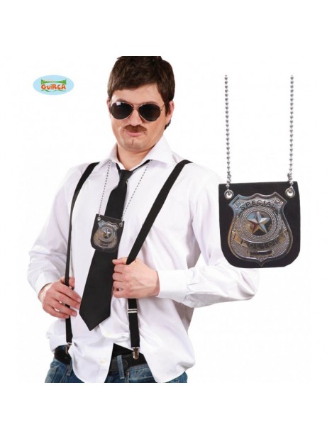 Distintivo Polizia Placca in metallo e Pelle con Collana