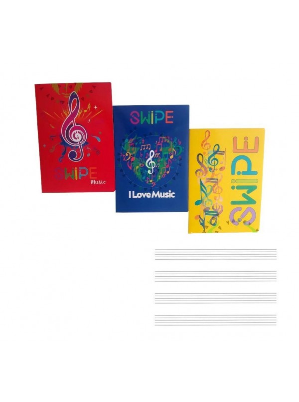 Maxi quaderno con 12 pentagramma per pagina, copertinata spessorata monocolore, 80 fogli, Swipe