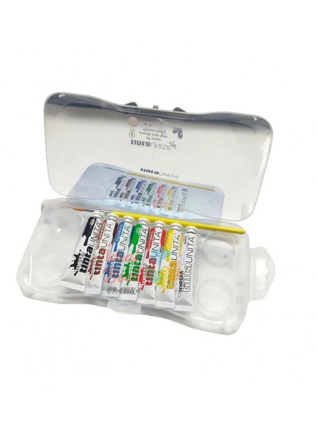 Tempera TintaUnita, tubetto 7, confezione da 7 colori 12ml ed in regalo pennello, ideale per la scuola o per iniziare a colorare