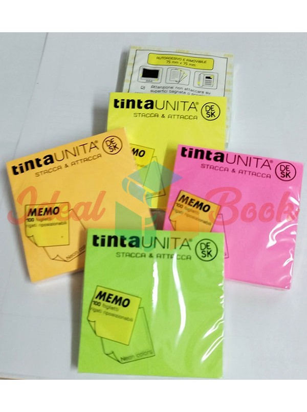 Memo 75x75mm Tinta Unita 100 Foglietti Stacca & Attacca Colori Fluo giallo