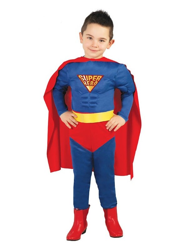 Costume Superman Muscoli Hero Tg 7-9 Anni Vestito carnevale Bambino
