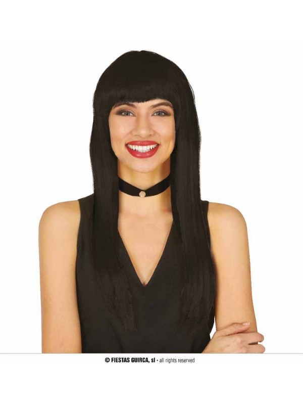 Parrucca Nera Capelli Lunghi con frangetta Melenas Carnevale