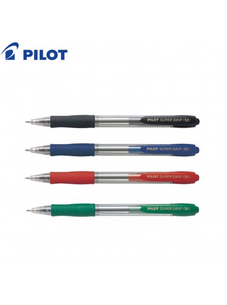 Penna a scatto Pilot Super Grip, punta media da 1mm, impugnatura super comoda con grip in gomma, ideale per bambini e per ufficio