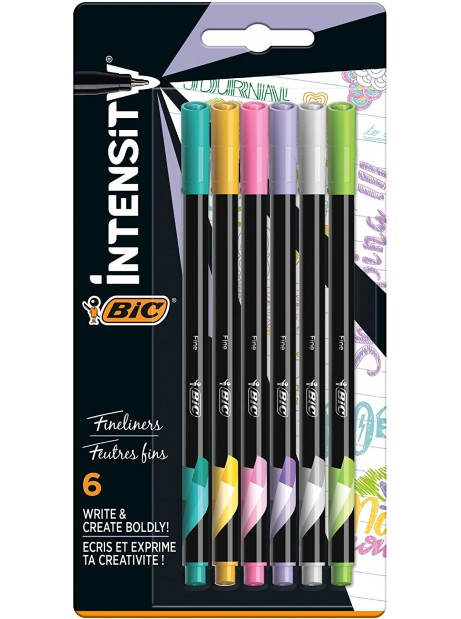 BIC Intensity Pennarelli con punta fine in feltro Confezione da 6 Colori pastello assortiti.