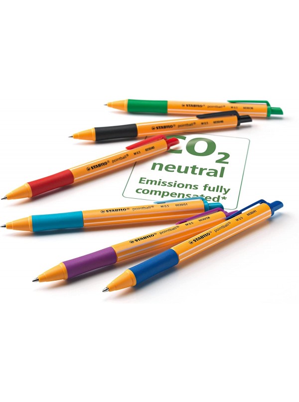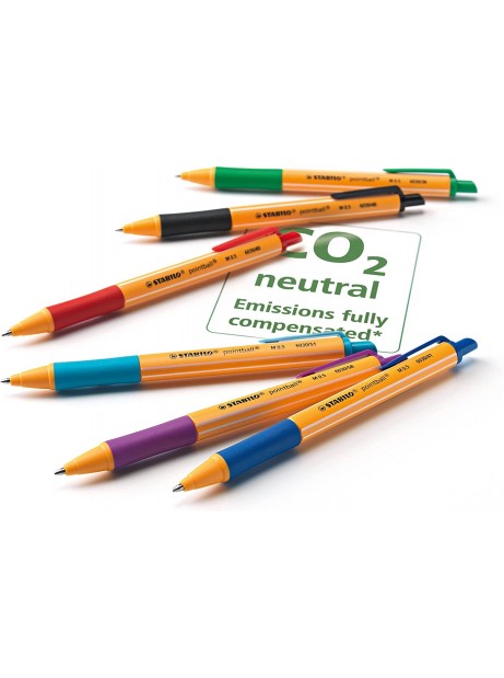 Penna a Scatto Stabilo PoinBall a sfera con grip impugnatura, Inchiostro indelebile blu, nero, verde, rosso, viola e celeste